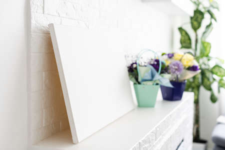 flowers. White stretched canvas for mock up.
