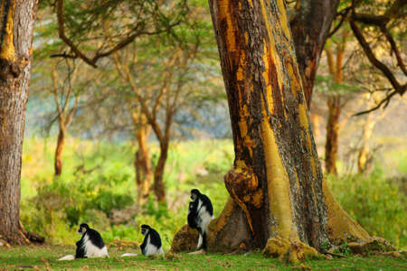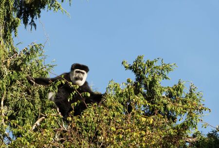 beautiful monkey Colobus guereza, in natural habitat near Lake Awassa, Ethiopia, Africa wildlife