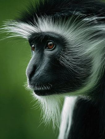 Detailed view of mantled guereza, colobus guereza, in black and white