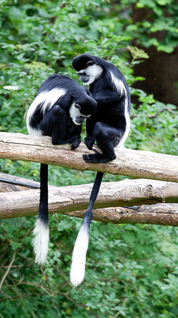 photo of a pair of grooming Colobus monkeys