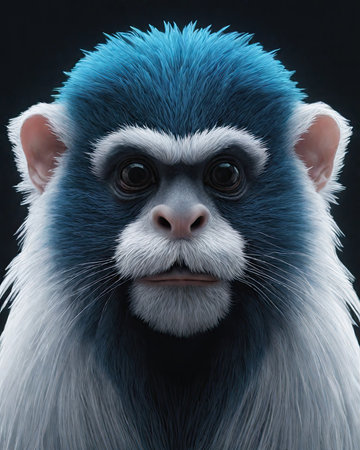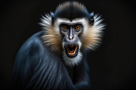 Cercopithecus diana, the Diana monkey, has a dark background, a scream, a crescent shaped browband, a ruff, and a beard. Animals in the wild. Portrait. Generative AI