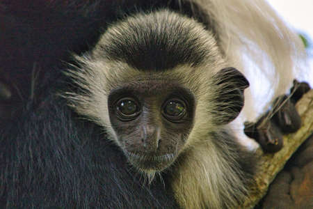 Colobus monkey with black and white fur.
