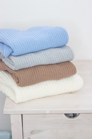 close up of stacked knitted clothes