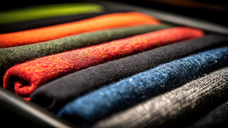 This image showcases a close-up view of various folded colorful textiles, artistically arranged in a drawer, perfect for inspiring home decor ideas.
