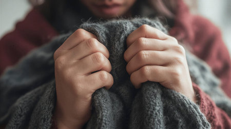 A close-up of hands gripping a soft, warm blanket, conveying a sense of comfort and warmth.