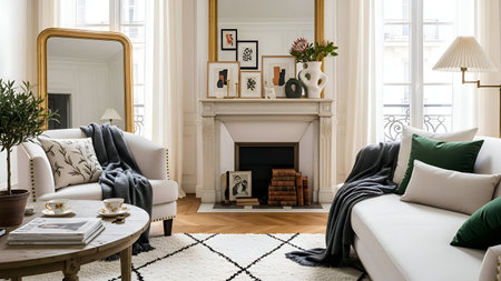 A stunning view of a luxurious living room showcasing classic design and intricate details.