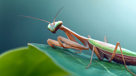 A praying mantis poised on a leaf, showcasing the stealth and patience of this fascinating predator