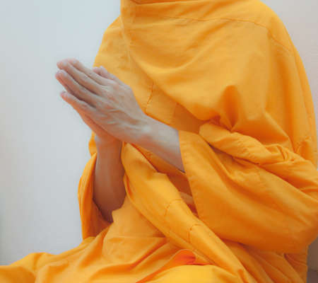 Hands of Buddhist monk praying for the Buddhist