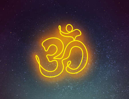 Night sky with stars and symbol of OM. Universe