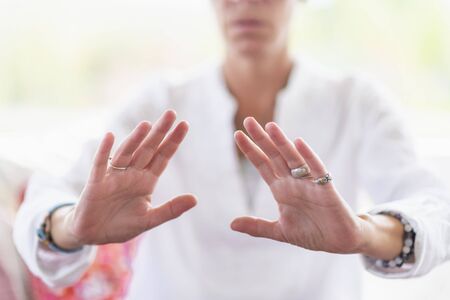 Spiritual Healer Expressing Honesty with her Hands