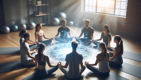 Group breathing session, Ai generated image