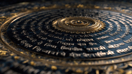This captivating close-up image showcases intricate brass inscriptions on a textured surface, highlighting the artistic interplay of light and shadow.
