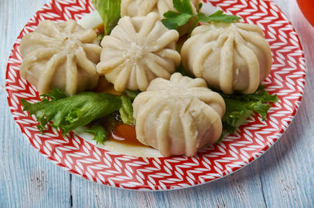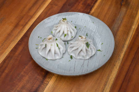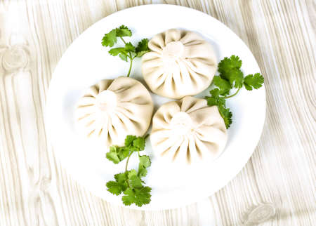 Caucasuan cuisine - Khinkali with meat on a white plate.