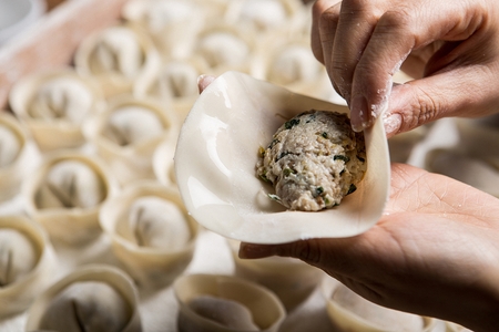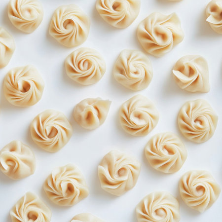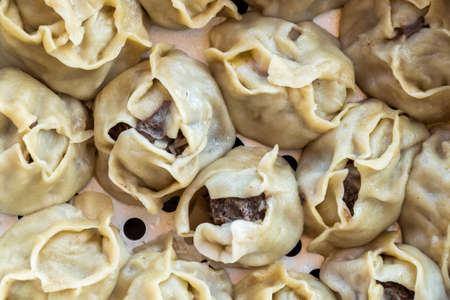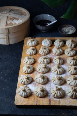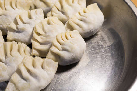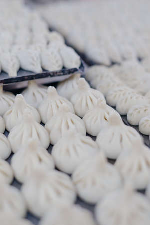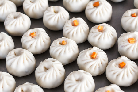 Close up of uncooked Baozi chinese dumplings. Azian dumplings