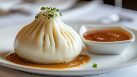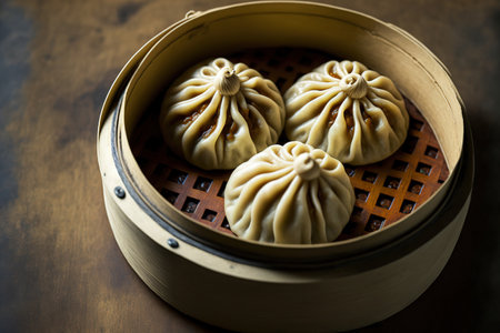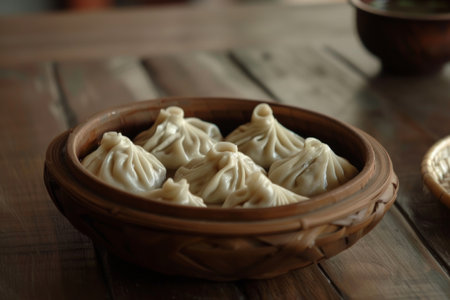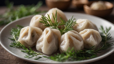 Delicious Steamed Dumpling in Minimal Style on Rustic Background AI Generated