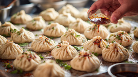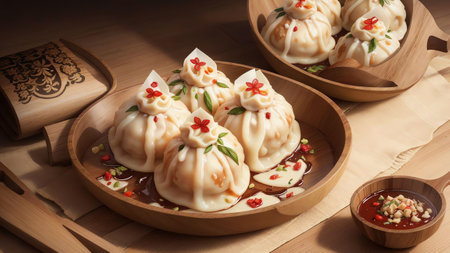 Fiery Delicacies Celebrating National Dumpling Day with Sichuan Peppercorns AI Generated.