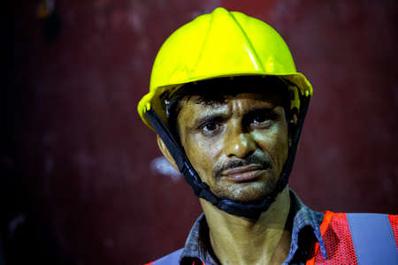 Portrait Engineer working hard at a construction site. Working way in hot weather. Career work hard.