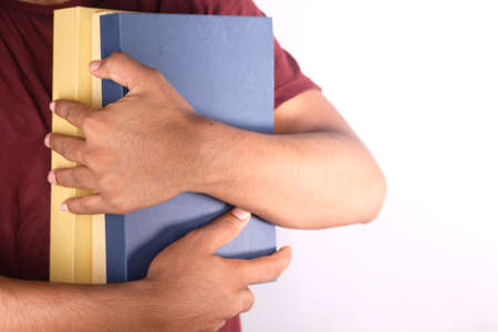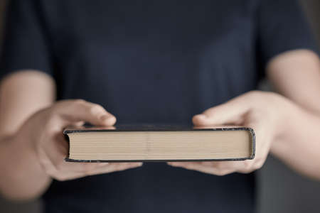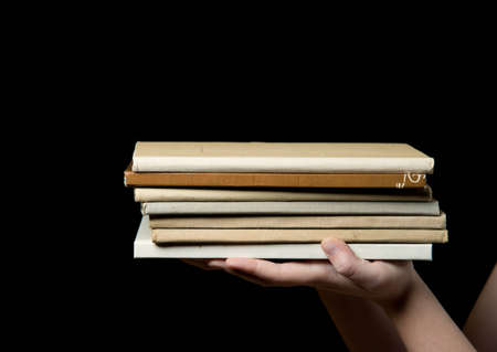 Closeup of Hands Holding A Stack Of Books. Concept of self-isolation self-education, and quarantine