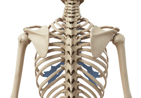 A highly detailed anatomical model showcasing the human skeleton, focusing on the rib cage, spine, and clavicle. Ideal for educational and medical contexts, isolated against a neutral background.