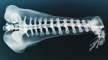 X-Ray Image of Human Thoracic Skeleton Featuring Spine and Shoulder Bones. Concept of Medical Imaging, Anatomy Study, Health Diagnostics.
