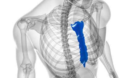 Human Skeleton Sternum Bone Anatomy For Medical Concept 3D Illustration