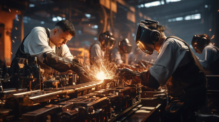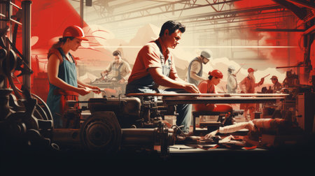 Factory workers play a crucial role in manufacturing processes, operating machinery, assembling products, and maintaining production lines. Generated with AI