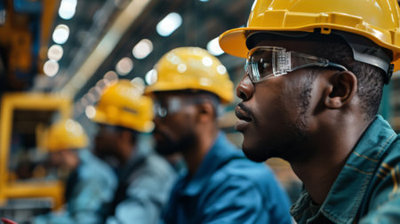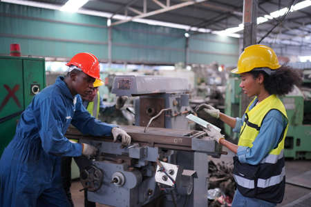 African American engineer skills quality, maintenance, training industry factory worker , warehouse Workshop for factory operators, mechanical engineering team production.