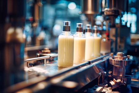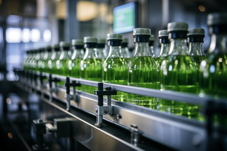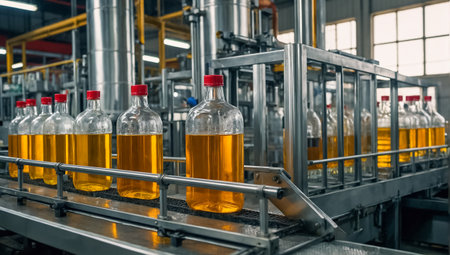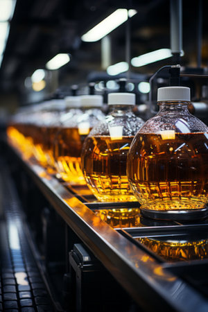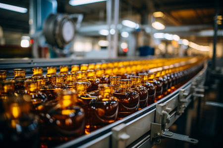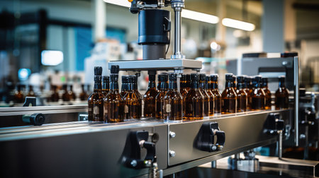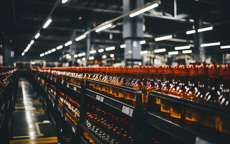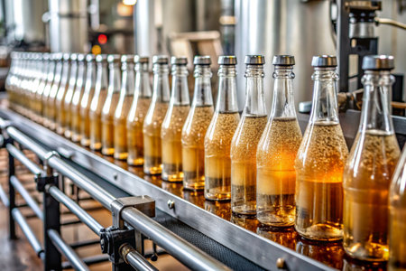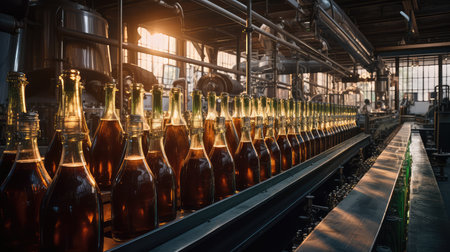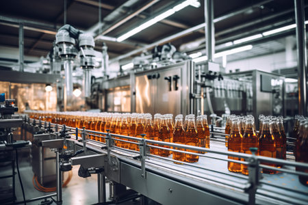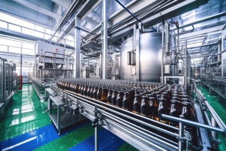Precise automation at the soda factory: bottles fill as machines work., generative AI