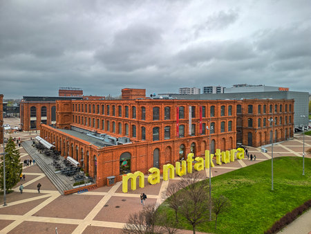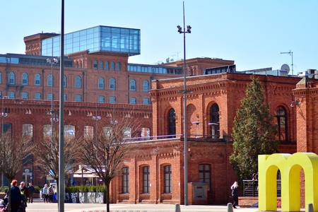 Lodz, Poland. 7 April 2018. Shopping Mall Manofaktura in Lodz transformed from industrial buildings into an elegant place for shopping.