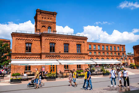 Lodz, Poland - Month August, 2018: Manufaktura. The complex is arts centre, shopping mall, and leisure place.