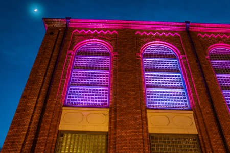 Beautifully renovated building illuminated at night