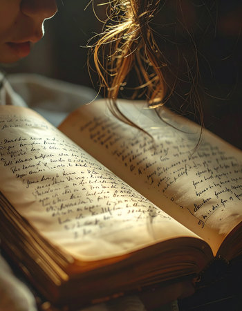 In the quiet hush of a library's hidden corner, a scholar pores over a fragile, handwritten manuscript.