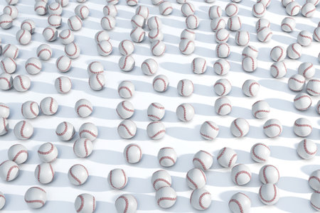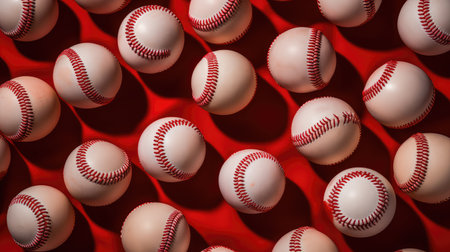 Illustration of background with baseballs on white background, minimalistic, black and white, high resolution, simple design, flat lay