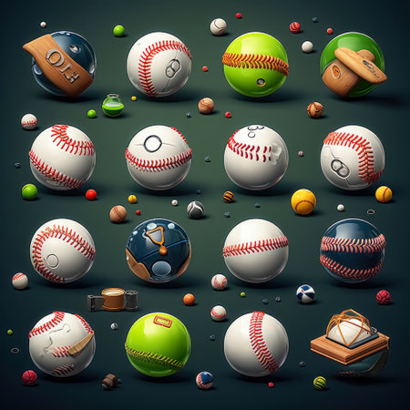 A colorful collection of sports balls, including baseballs and tennis balls, on a blue background, showcasing the diversity and enjoyment of athletic activities.