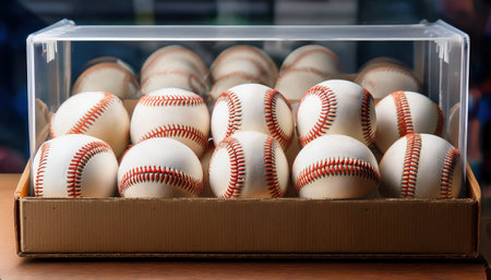 A clear box of pristine baseballs sparks excitement and captures attention for the sport.