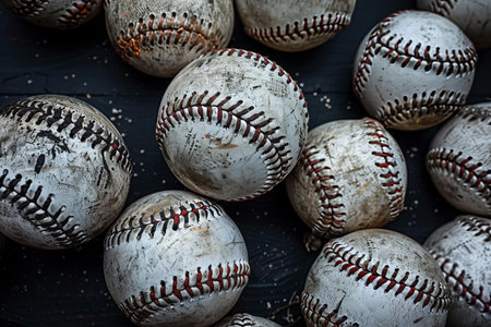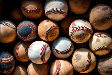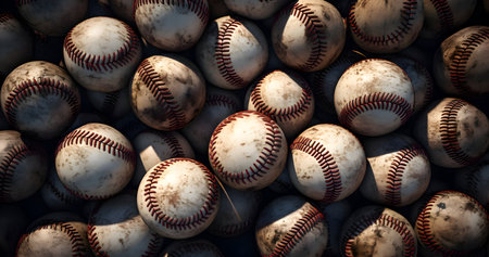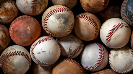 Generative AI, Rough and rugged texture of old baseball balls close up on vintage background