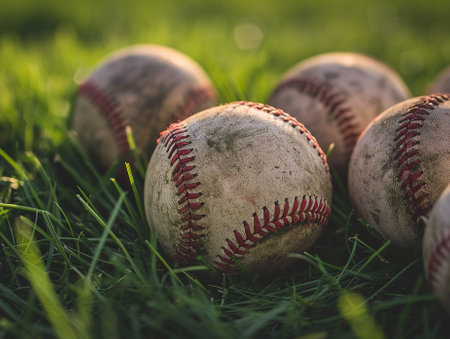 Capturing the Essence of Baseball: Stunning Close-Up Shots of Four Baseballs Resting on Fresh Green