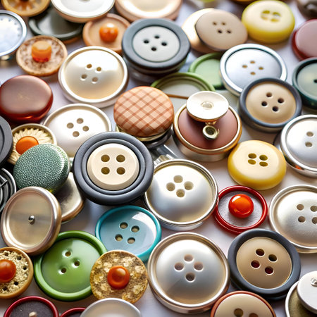 A vibrant assortment of sewing buttons in various shapes and colors, perfect for any creative project or fashion design, showcasing textures and unique patterns ideal for crafting enthusiasts.