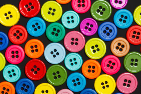 Group photo of colorful buttons used in dressmaking