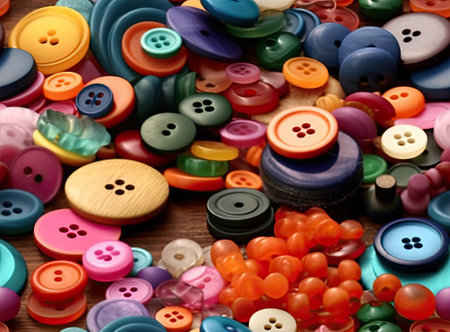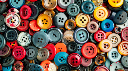 A vibrant and colorful collection of assorted buttons. perfect for crafting. scrapbooking. and DIY projects. This image is bursting with texture and detail. making it ideal for adding a touch of vintage charm to any design.
