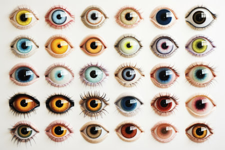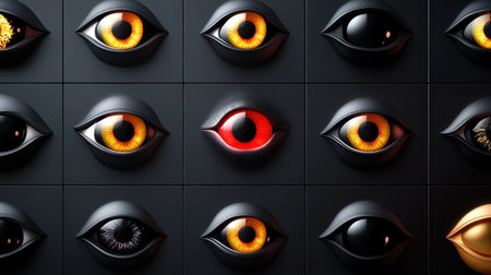 This striking collection showcases various eye designs exhibiting a range of colors and styles, offering inspiration for creative projects and artistic endeavors.