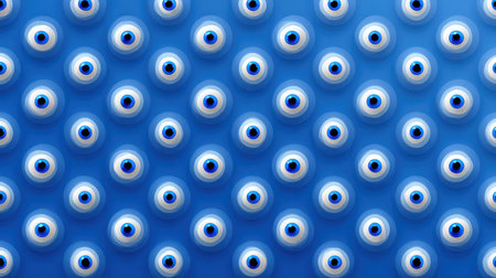 Evil eye amulet pattern with blue and white circular shapes symbolizing protection and good luck on vibrant blue background