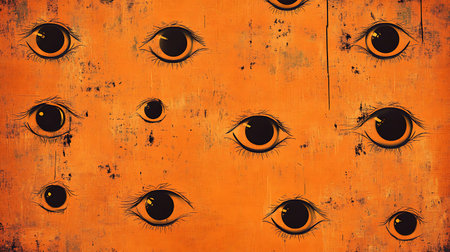 Halloween eerie orange background adorned with faint eyeball designs