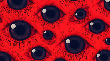 Halloween vibrant red vector backdrop with illustrated eyeball patterns
