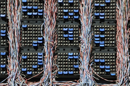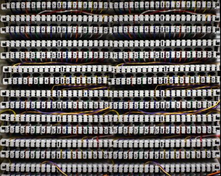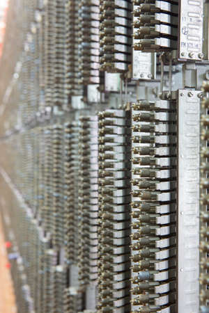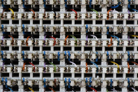 Telecommunication main distribution frame with cables, closeup