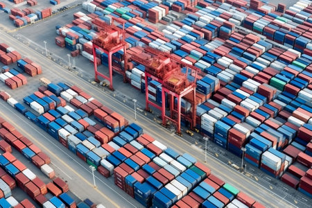 aerial view of cargo containers in a shipping port, created with generative ai