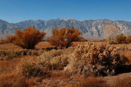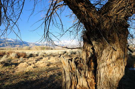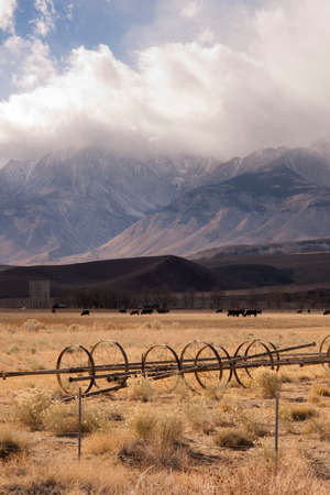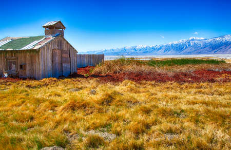 The fields of an old farm at the foot of the Eastern Sierra Nevada Mountain Range. California, USA