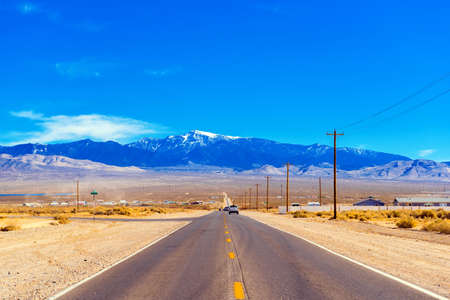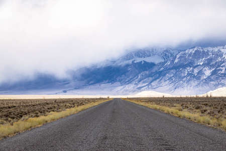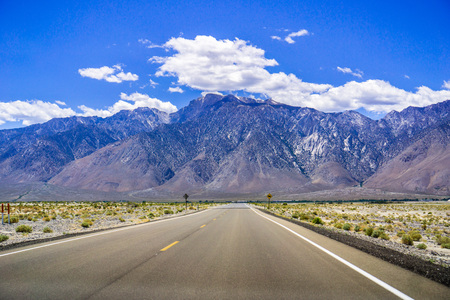 Scenic road through Owens lake ,dry salt lake in Eastern California.