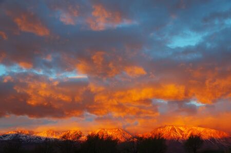 sunrise lights up the clouds and the eastern sierra mountains from Bishop California