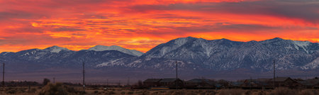 Panorama View of the San Gabriel Mountain from the high desert during Golden Hour before sunrise
